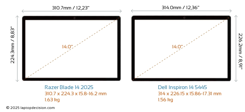 HDMIBoth Blade 14 2025 and Inspiron 14 5445 feature an HDMI port. Blade 14 2025 offers 1x HDMI 2.1, while Inspiron 14 5445 offers 1x HDMI 1.4.