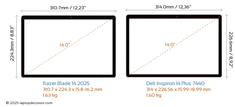 Audio JackBoth Blade 14 2025 and Inspiron 14 Plus 7440 are equipped with a 3.5mm Audio Jack, providing seamless connection to headphones and speakers.