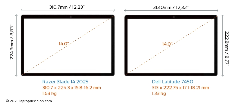 HDMIBoth Blade 14 2025 and Latitude 7450 feature an HDMI port (1x HDMI 2.1) for connecting to external monitors.