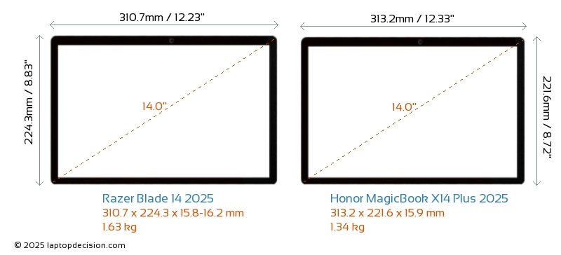 HDMIBoth Blade 14 2025 and MagicBook X14 Plus 2025 feature an HDMI port. Blade 14 2025 offers 1x HDMI 2.1, while MagicBook X14 Plus 2025 offers 1x HDMI 1.4.