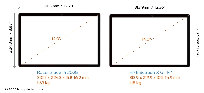 HDMIBoth Blade 14 2025 and EliteBook X G1i 14" feature an HDMI port (1x HDMI 2.1) for connecting to external monitors.
