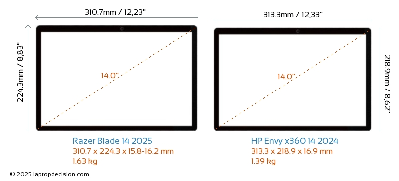 HDMIBoth Blade 14 2025 and Envy x360 14 2024 feature an HDMI port (1x HDMI 2.1) for connecting to external monitors.