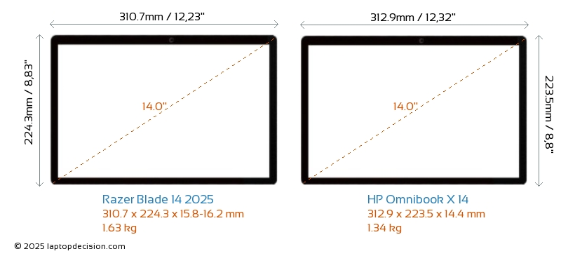 Audio JackBoth Blade 14 2025 and Omnibook X 14 are equipped with a 3.5mm Audio Jack, providing seamless connection to headphones and speakers.