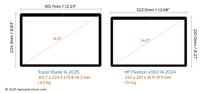 HDMIBoth Blade 14 2025 and Pavilion x360 14 2024 feature an HDMI port (1x HDMI 2.1) for connecting to external monitors.