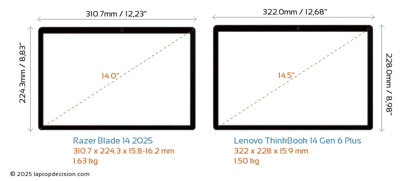Thunderbolt ThinkBook 14 Gen 6 Plus is equipped with Thunderbolt 4 port. Blade 14 2025 does not have Thunderbolt port.