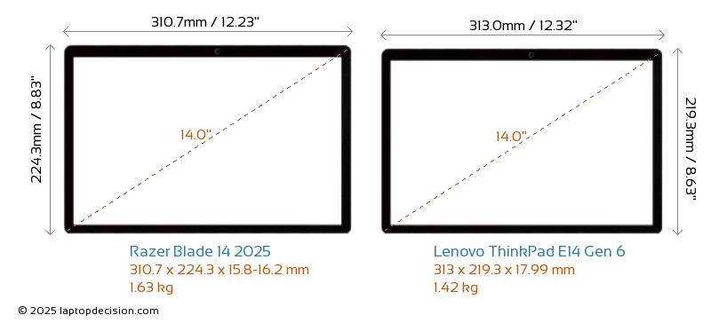 HDMIBoth Blade 14 2025 and ThinkPad E14 Gen 6 feature an HDMI port (1x HDMI 2.1) for connecting to external monitors.