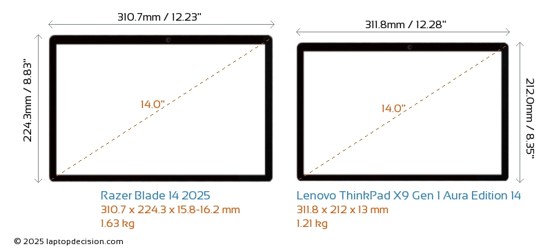 Audio JackBoth Blade 14 2025 and ThinkPad X9 Gen 1 Aura Edition 14 are equipped with a 3.5mm Audio Jack, providing seamless connection to headphones and speakers.