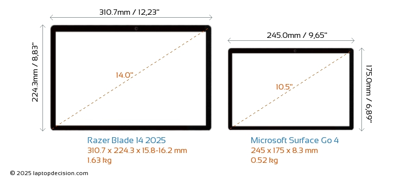 ThunderboltNeither Blade 14 2025 nor Surface Go 4 has Thunderbolt port.