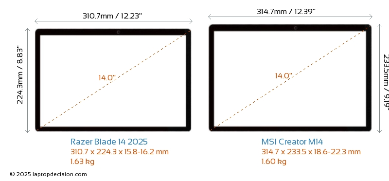 HDMIBoth Blade 14 2025 and Creator M14 feature an HDMI port (1x HDMI 2.1) for connecting to external monitors.