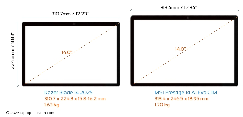 HDMIBoth Blade 14 2025 and Prestige 14 AI Evo C1M feature an HDMI port (1x HDMI 2.1) for connecting to external monitors.