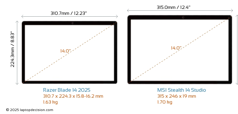 Wifi Blade 14 2025 features a more advanced Wi-Fi standard v7, providing faster and more reliable wireless connections compared to Stealth 14 Studio (v6E).