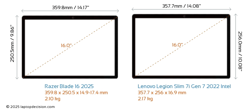 ThunderboltBoth Blade 16 2025 and Legion Slim 7i Gen 7 2022 Intel are equipped with Thunderbolt 4 ports.