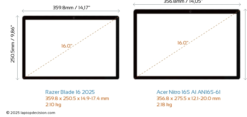 HDMIBoth Blade 16 2025 and Nitro 16S AI AN16S-61 feature an HDMI port (1x HDMI 2.1) for connecting to external monitors.
