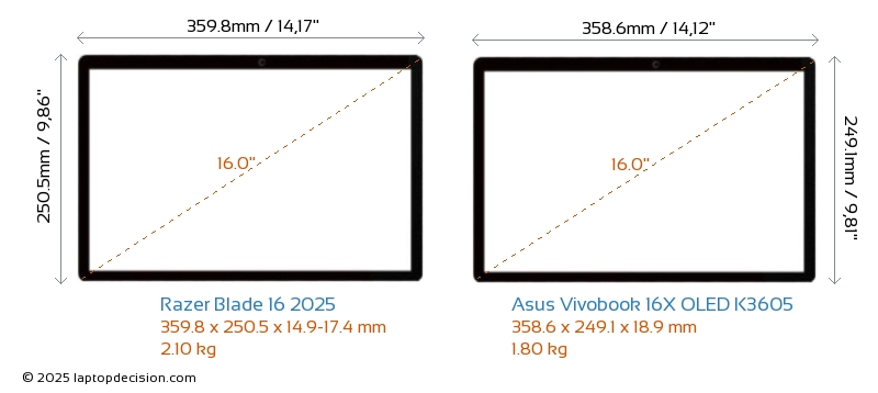 ThunderboltBoth Blade 16 2025 and Vivobook 16X OLED K3605 are equipped with Thunderbolt 4 ports.