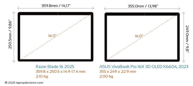 ThunderboltBoth Blade 16 2025 and VivoBook Pro 16X 3D OLED K6604, 2023 are equipped with Thunderbolt 4 ports.