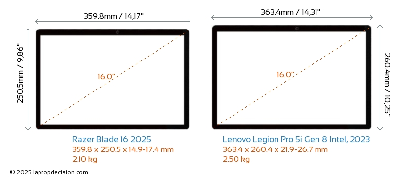 ThunderboltBoth Blade 16 2025 and Legion Pro 5i Gen 8 Intel, 2023 are equipped with Thunderbolt 4 ports.
