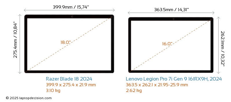 Wifi Blade 18 2024 features a more advanced Wi-Fi standard v7, providing faster and more reliable wireless connections compared to Legion Pro 7i Gen 9 16IRX9H, 2024 (v6E).