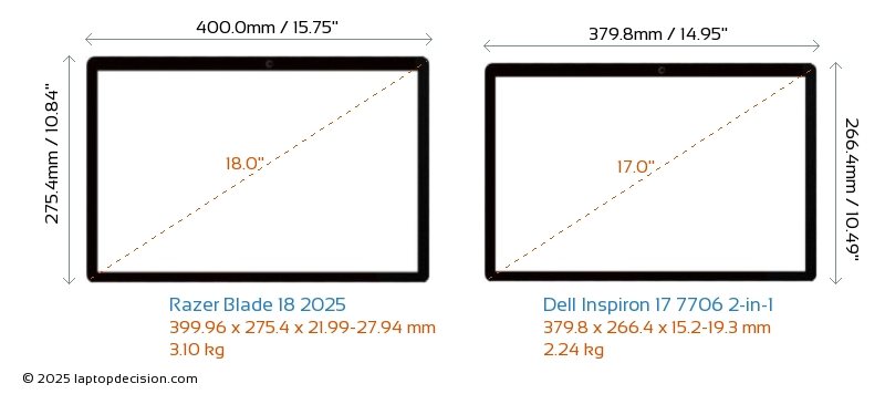 Audio JackBoth Blade 18 2025 and Inspiron 17 7706 2-in-1 are equipped with a 3.5mm Audio Jack, providing seamless connection to headphones and speakers.