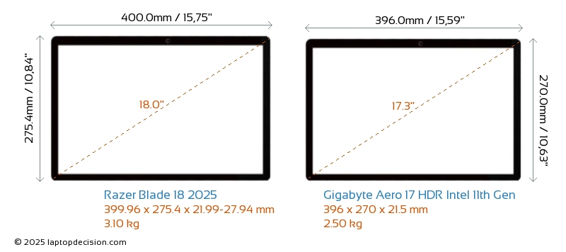Audio JackBoth Blade 18 2025 and Aero 17 HDR Intel 11th Gen are equipped with a 3.5mm Audio Jack, providing seamless connection to headphones and speakers.