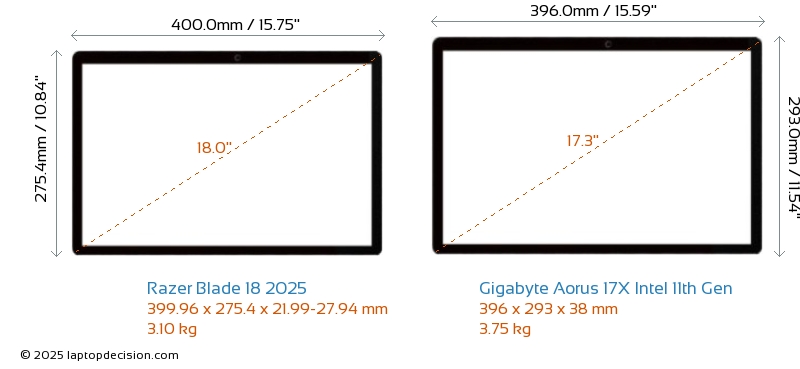 Wifi Blade 18 2025 features a more advanced Wi-Fi standard v7, providing faster and more reliable wireless connections compared to Aorus 17X Intel 11th Gen (v6).