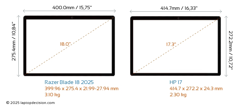 USBBoth Blade 18 2025 and 17 feature 3x USB 3.2 USB-A ports. Blade 18 2025 is equipped with 2x USB 4.0 USB Type-C ports. 17 does not have USB Type-C ports.