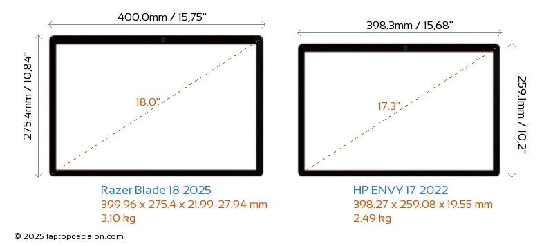 USBBoth Blade 18 2025 and ENVY 17 2022 feature 3x USB 3.2 USB-A ports.Both Blade 18 2025 and ENVY 17 2022 feature 2x USB 4.0 USB Type-C ports.