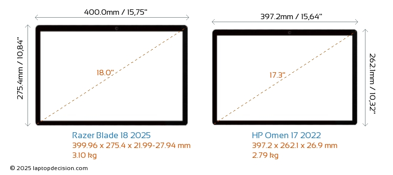 HDMIBoth Blade 18 2025 and Omen 17 2022 feature an HDMI port (1x HDMI 2.1) for connecting to external monitors.