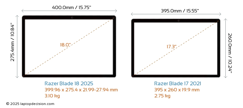 USBBoth Blade 18 2025 and Blade 17 2021 feature 3x USB 3.2 USB-A ports.Both Blade 18 2025 and Blade 17 2021 feature 2x USB 4.0 USB Type-C ports.