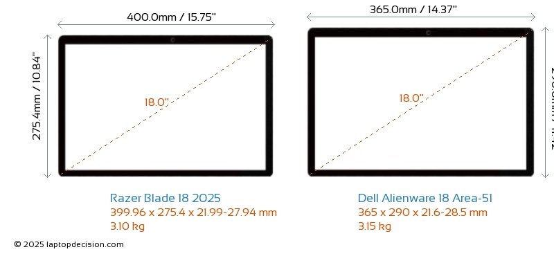 ThunderboltBoth Blade 18 2025 and Alienware 18 Area-51 are equipped with Thunderbolt 5 ports.