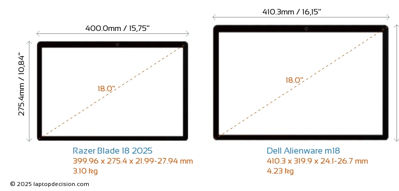 Wifi Blade 18 2025 features a more advanced Wi-Fi standard v7, providing faster and more reliable wireless connections compared to Alienware m18 (v6E).