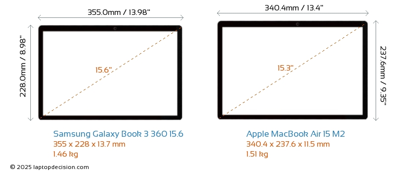 HDMI Galaxy Book 3 360 15.6 features an HDMI port (1x HDMI 1.4) for connecting to external monitors. MacBook Air 15 M2 does not have an HDMI port.