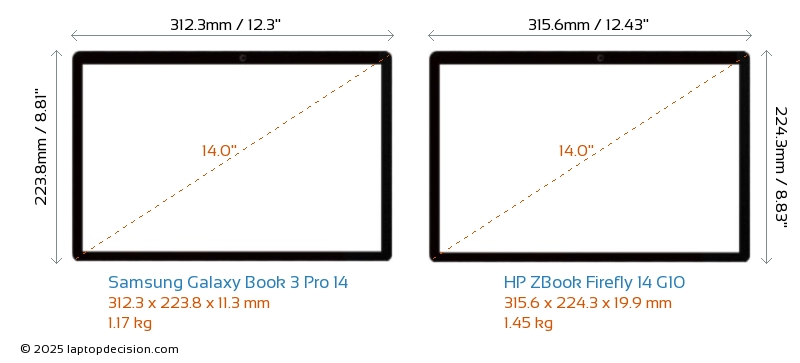 HDMIBoth Galaxy Book 3 Pro 14 and ZBook Firefly 14 G10 feature an HDMI port. Galaxy Book 3 Pro 14 offers 1x HDMI 1.4, while ZBook Firefly 14 G10 offers 1x HDMI 2.0.