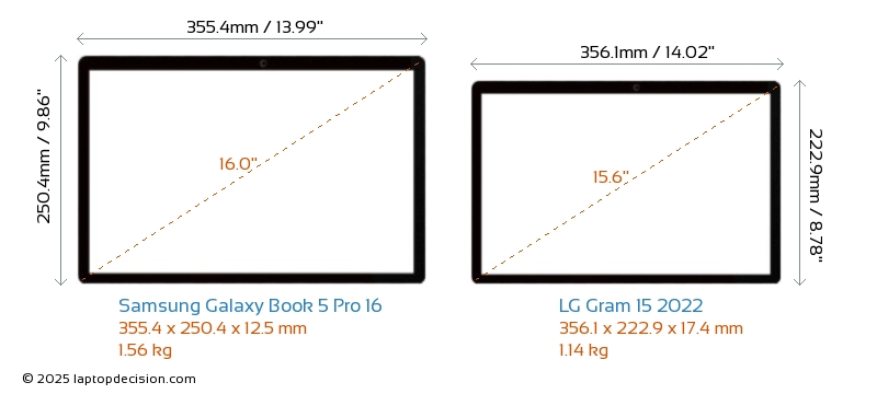 HDMIBoth Galaxy Book 5 Pro 16 and Gram 15 2022 feature an HDMI port. Galaxy Book 5 Pro 16 offers 1x HDMI 2.1, while Gram 15 2022 offers 1x HDMI 2.0.
