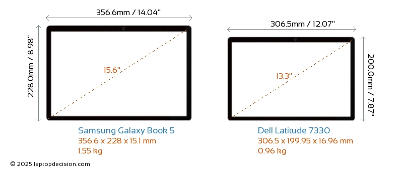HDMIBoth Galaxy Book 5 and Latitude 7330 feature an HDMI port. Galaxy Book 5 offers 1x HDMI 1.4, while Latitude 7330 offers 1x HDMI 2.0.