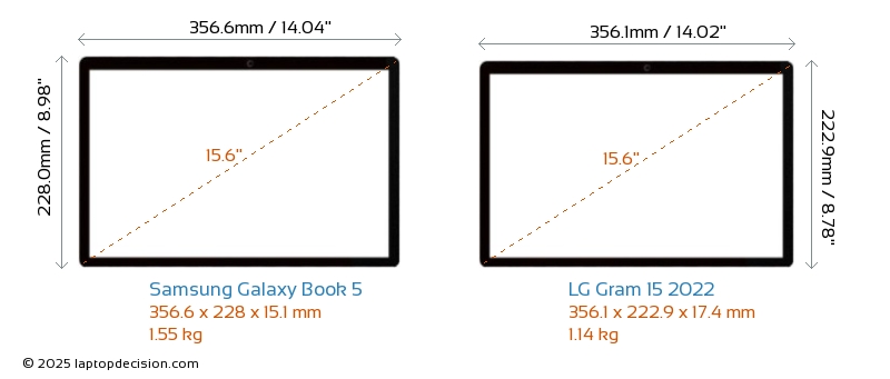 HDMIBoth Galaxy Book 5 and Gram 15 2022 feature an HDMI port. Galaxy Book 5 offers 1x HDMI 1.4, while Gram 15 2022 offers 1x HDMI 2.0.