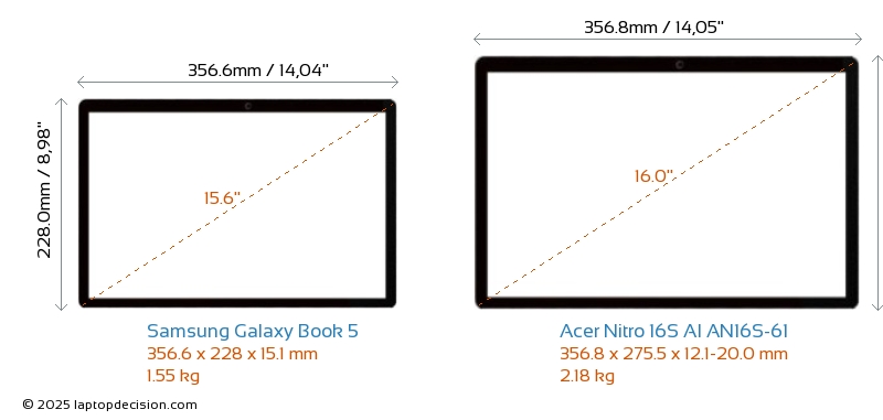 ThunderboltNeither Galaxy Book 5 nor Nitro 16S AI AN16S-61 has Thunderbolt port.