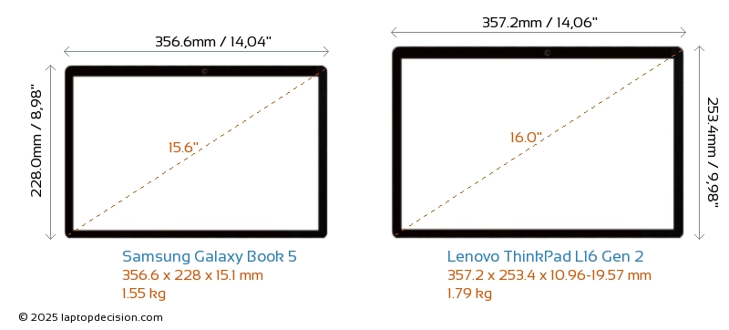 Audio JackBoth Galaxy Book 5 and ThinkPad L16 Gen 2 are equipped with a 3.5mm Audio Jack, providing seamless connection to headphones and speakers.