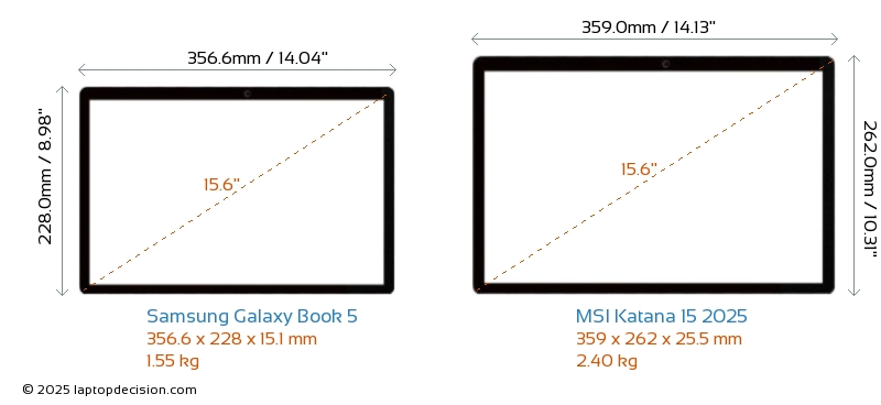 ThunderboltNeither Galaxy Book 5 nor Katana 15 2025 has Thunderbolt port.