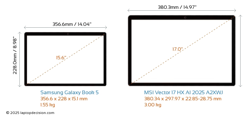 Audio JackBoth Galaxy Book 5 and Vector 17 HX AI 2025 A2XWJ are equipped with a 3.5mm Audio Jack, providing seamless connection to headphones and speakers.
