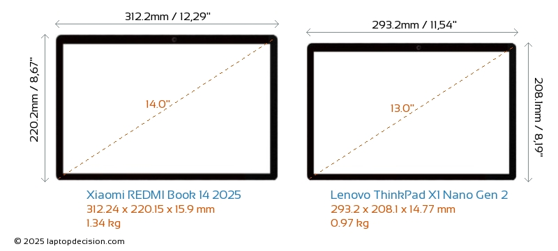 HDMI REDMI Book 14 2025 features an HDMI port (1x HDMI 2.1) for connecting to external monitors. ThinkPad X1 Nano Gen 2 does not have an HDMI port.