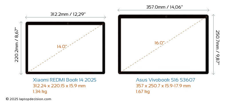 HDMIBoth REDMI Book 14 2025 and Vivobook S16 S3607 feature an HDMI port (1x HDMI 2.1) for connecting to external monitors.