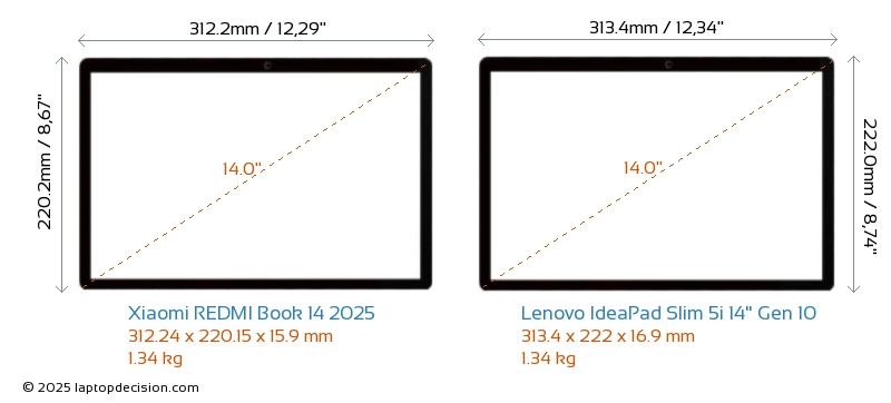 Audio JackBoth REDMI Book 14 2025 and IdeaPad Slim 5i 14" Gen 10 are equipped with a 3.5mm Audio Jack, providing seamless connection to headphones and speakers.