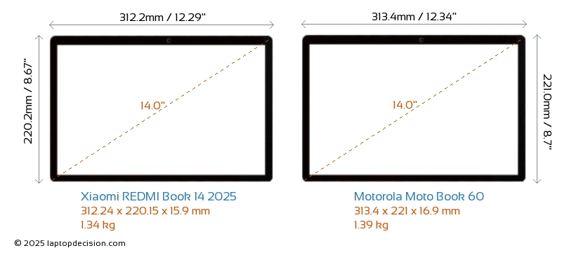USBBoth REDMI Book 14 2025 and Moto Book 60 feature 2x USB 3.2 USB-A ports.Both REDMI Book 14 2025 and Moto Book 60 feature 2x USB 4.0 USB Type-C ports.