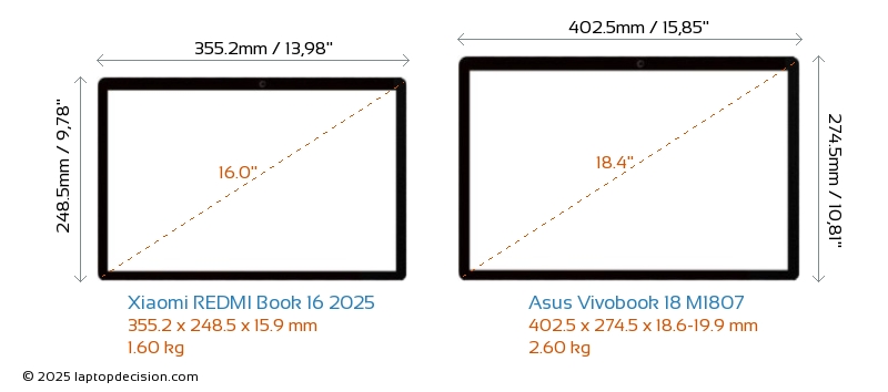 HDMIBoth REDMI Book 16 2025 and Vivobook 18 M1807 feature an HDMI port (1x HDMI 2.1) for connecting to external monitors.