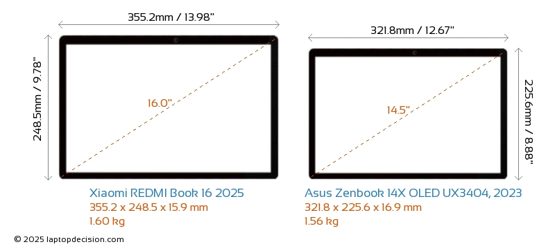 Audio JackBoth REDMI Book 16 2025 and Zenbook 14X OLED UX3404, 2023 are equipped with a 3.5mm Audio Jack, providing seamless connection to headphones and speakers.
