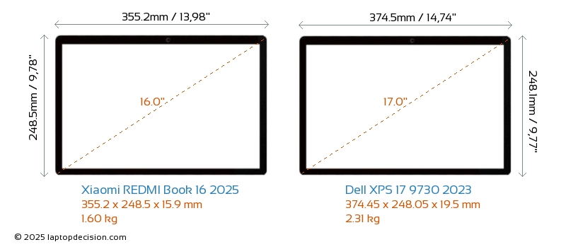 HDMI REDMI Book 16 2025 features an HDMI port (1x HDMI 2.1) for connecting to external monitors. XPS 17 9730 2023 does not have an HDMI port.