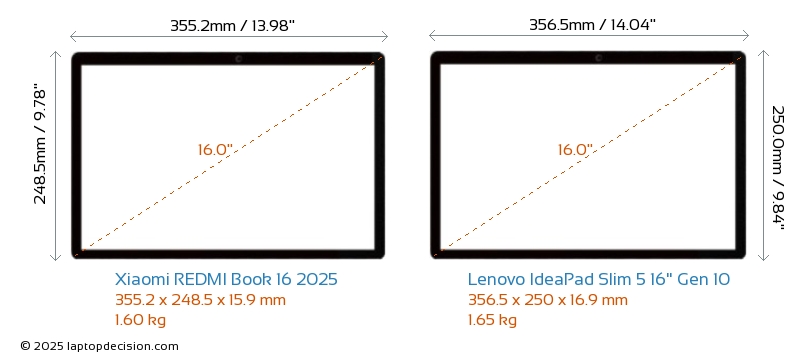 ThunderboltNeither REDMI Book 16 2025 nor IdeaPad Slim 5 16" Gen 10 has Thunderbolt port.