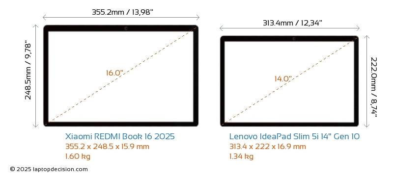 ThunderboltNeither REDMI Book 16 2025 nor IdeaPad Slim 5i 14" Gen 10 has Thunderbolt port.
