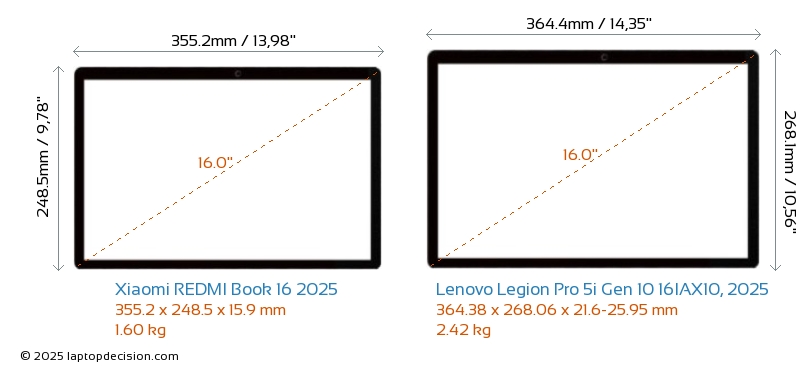 HDMIBoth REDMI Book 16 2025 and Legion Pro 5i Gen 10 16IAX10, 2025 feature an HDMI port (1x HDMI 2.1) for connecting to external monitors.