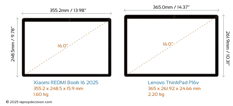 HDMIBoth REDMI Book 16 2025 and ThinkPad P16v feature an HDMI port (1x HDMI 2.1) for connecting to external monitors.